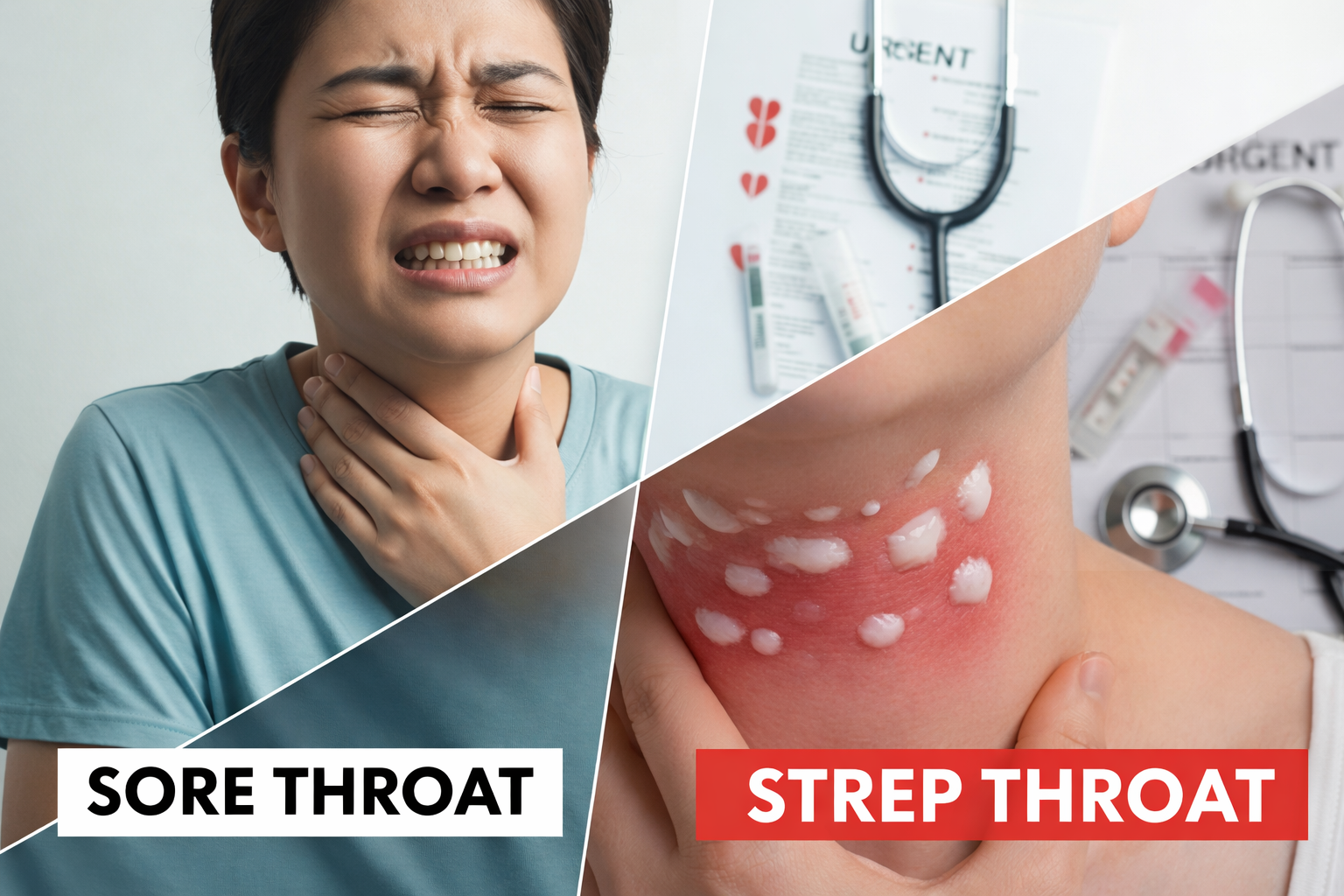 Walk-in urgent care sore throat is perfect here, faster than an ER and more convenient than waiting days for a primary care appointment.
