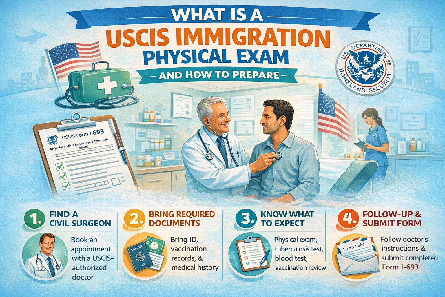 If you’re applying for a green card or adjusting your immigration status in the United States, you must have heard about the USCIS immigration physical exam. People often get confused in this step and are also intimidated. Because they don't have knowledge about what happens during the immigration exam, what documents are needed, how long it takes and most importantly, how to make sure everything goes smoothly. For all these queries, you need to understand the USCIS immigration physical exam. So let’s understand its concept in detail and clear up all your confusion.